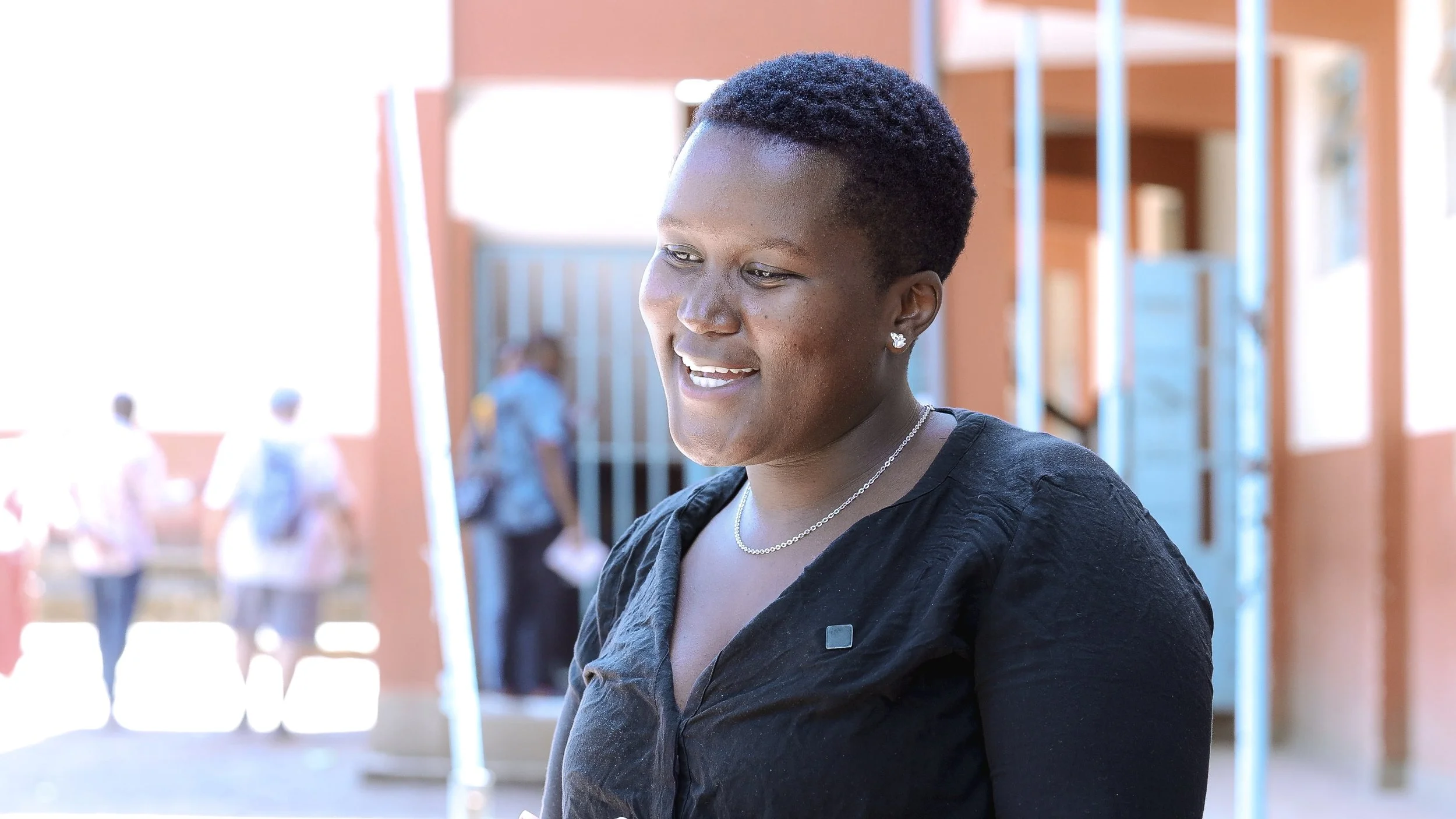 "I'm Damackline," she begins, voice unhurried, grounded in itself. "A young girl from the slums. I come from Kibera slums. That is where I have grown and raised. I've learned there, and now I'm here."